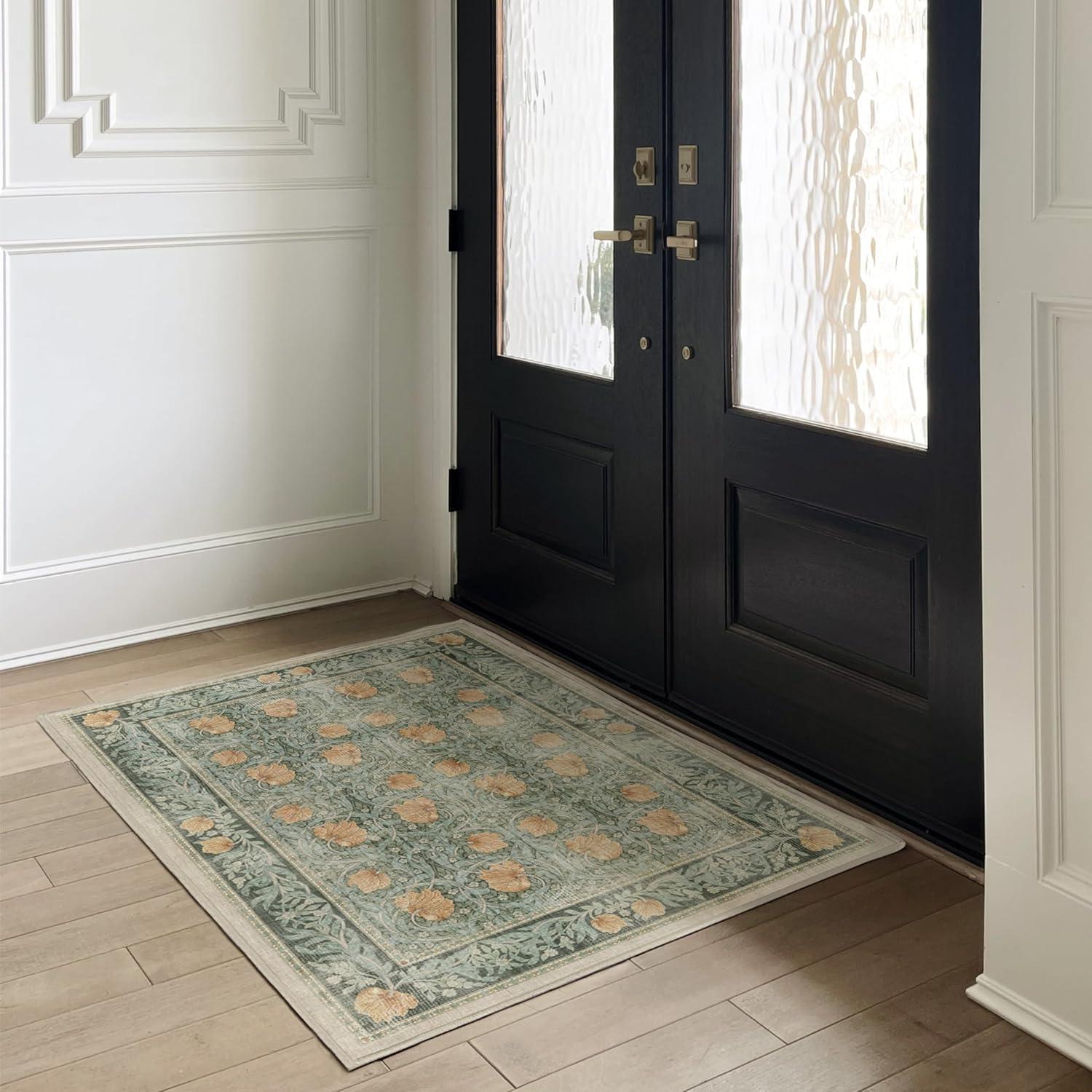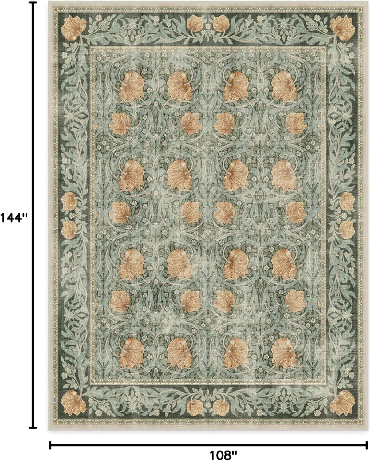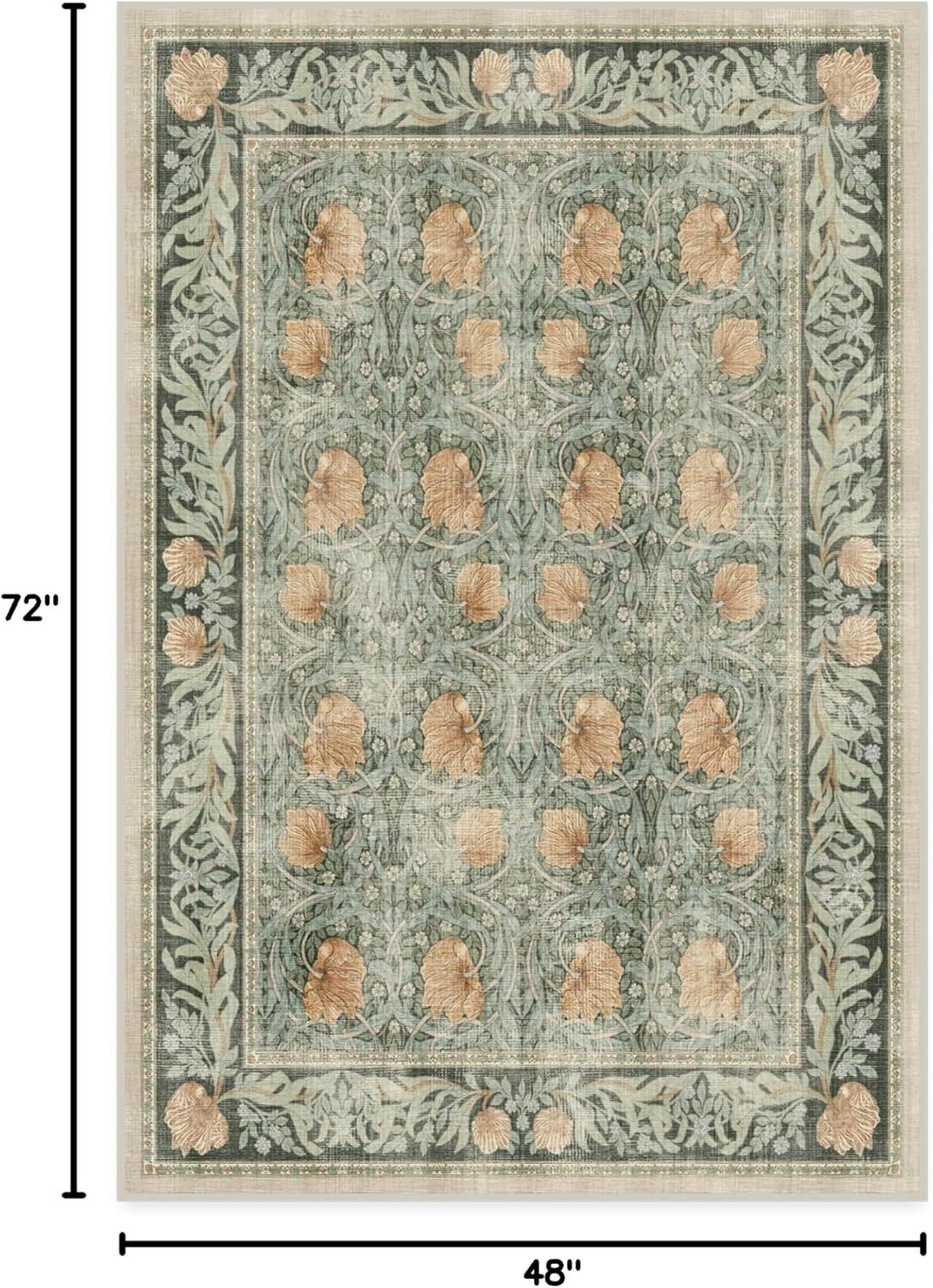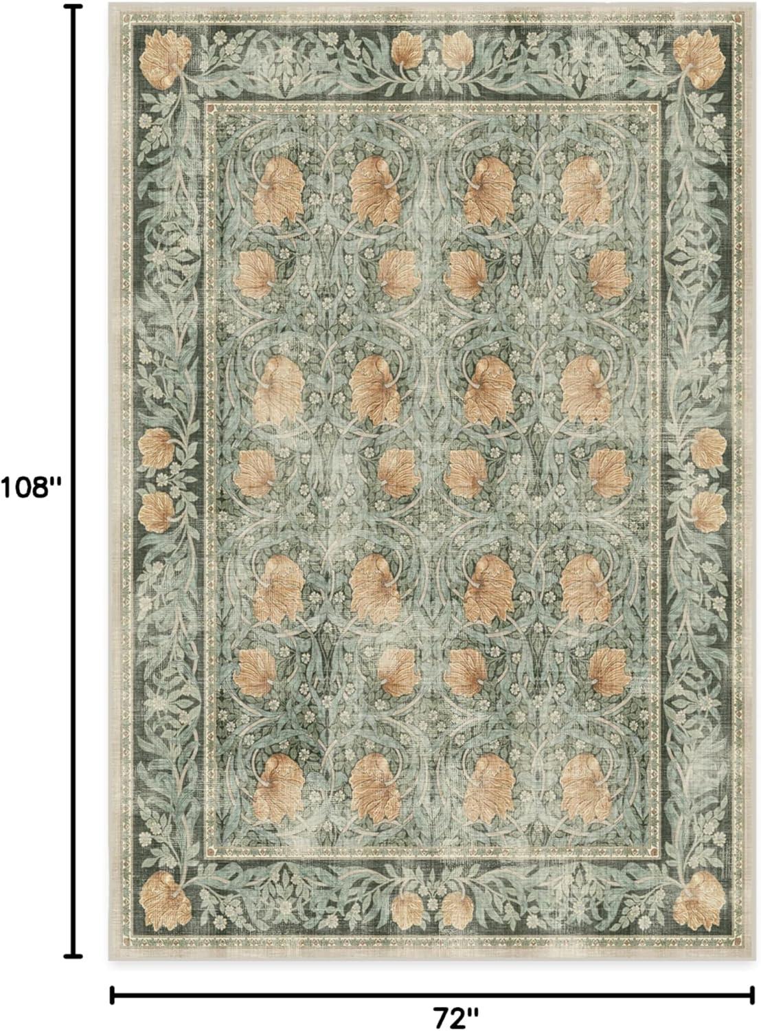 RUGGABLE x Morris & Co Washable Runner Rug – Mallow Rust Red 2.5×7, Stain-Resistant, Non-Slip Hallway Runner – Machine Washable Rug for Hallway, Entryway, Living Room & Kitchen–with Standard Pad(Pimpernel Vintage Green – Standard Pad)