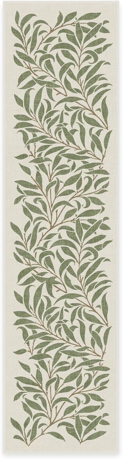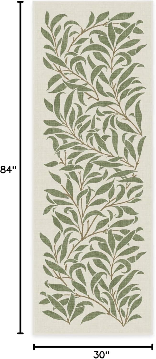 RUGGABLE x Morris & Co Washable Runner Rug – Mallow Rust Red 2.5×7, Stain-Resistant, Non-Slip Hallway Runner – Machine Washable Rug for Hallway, Entryway, Living Room & Kitchen–with Standard Pad(Pure Willow Boughs Green – Standard Pad)