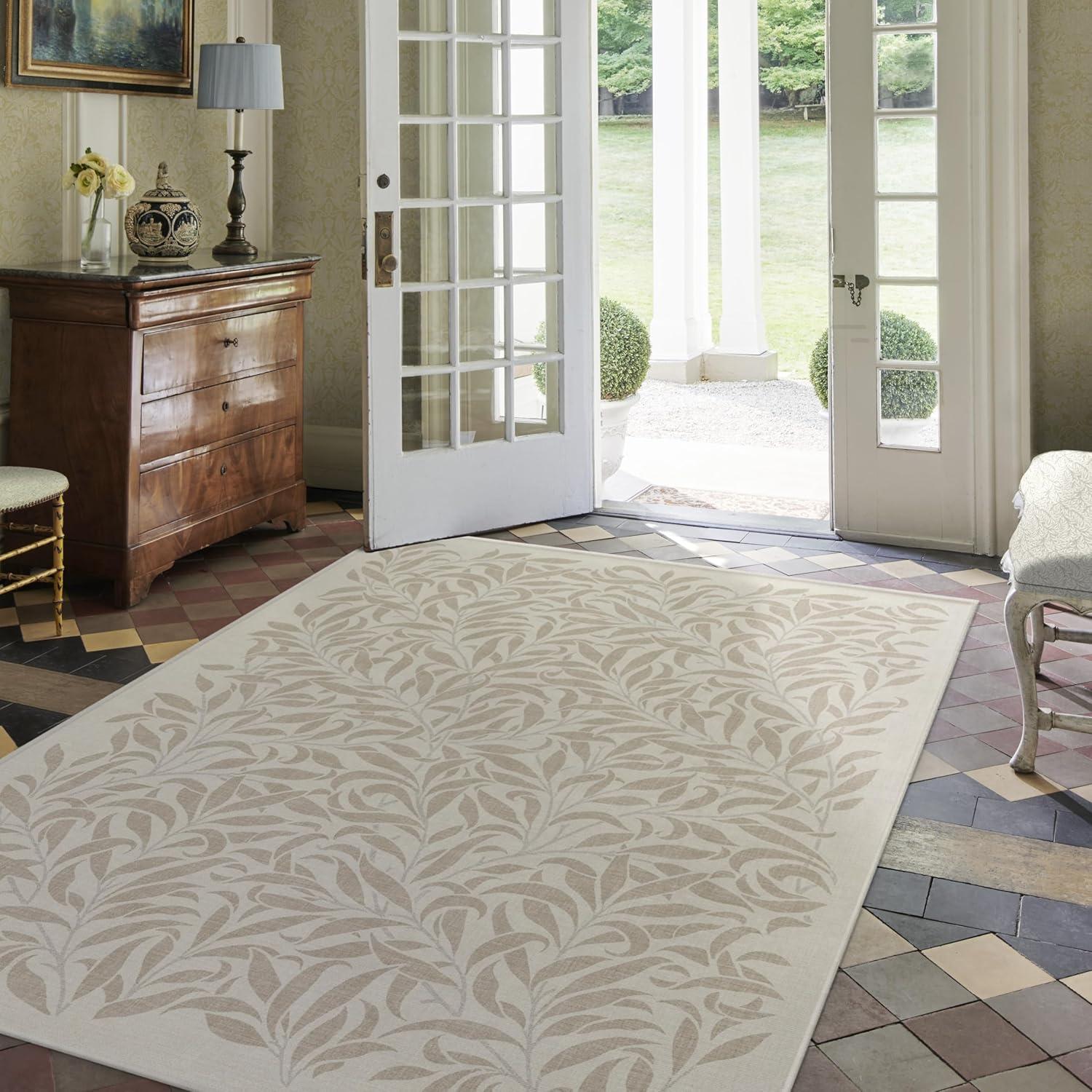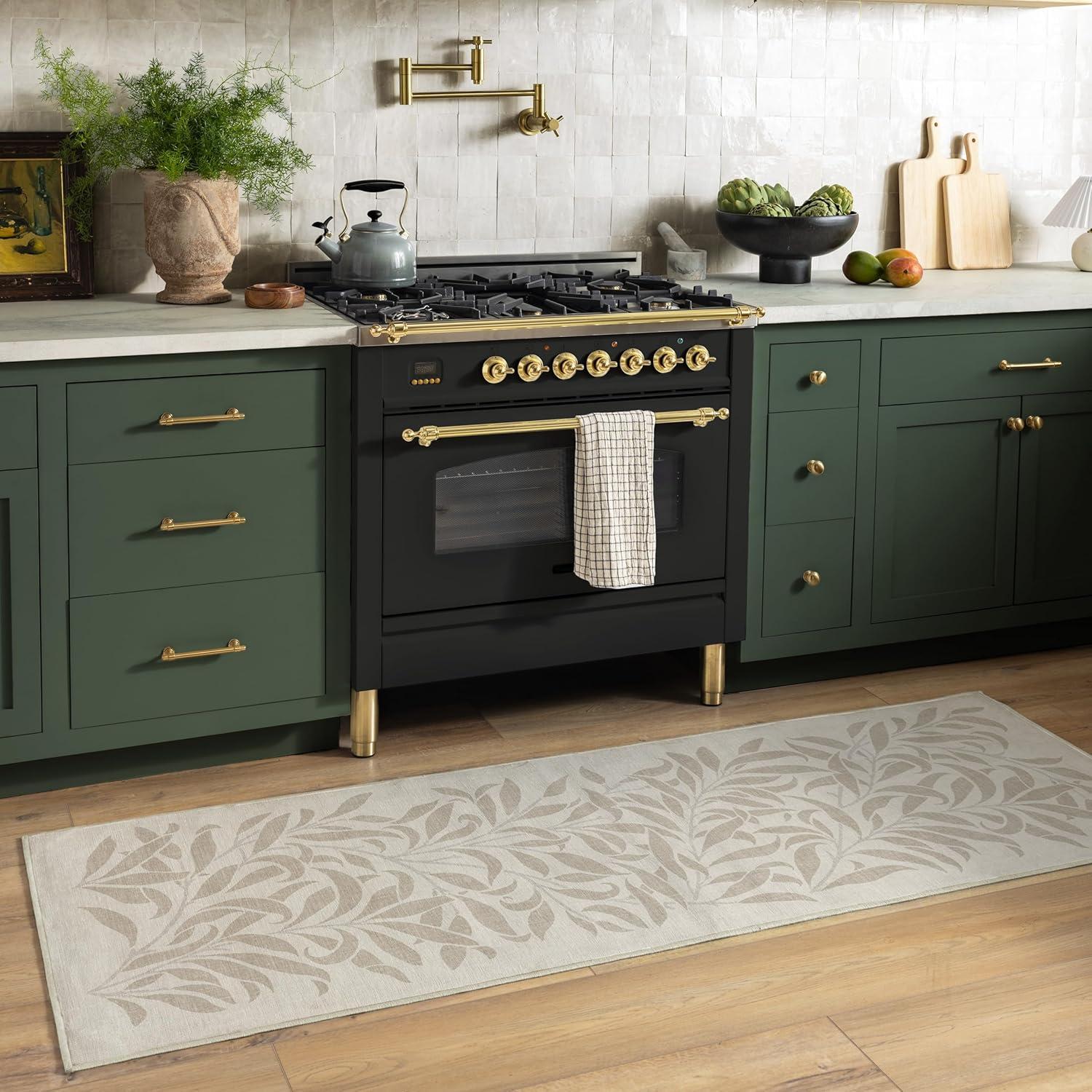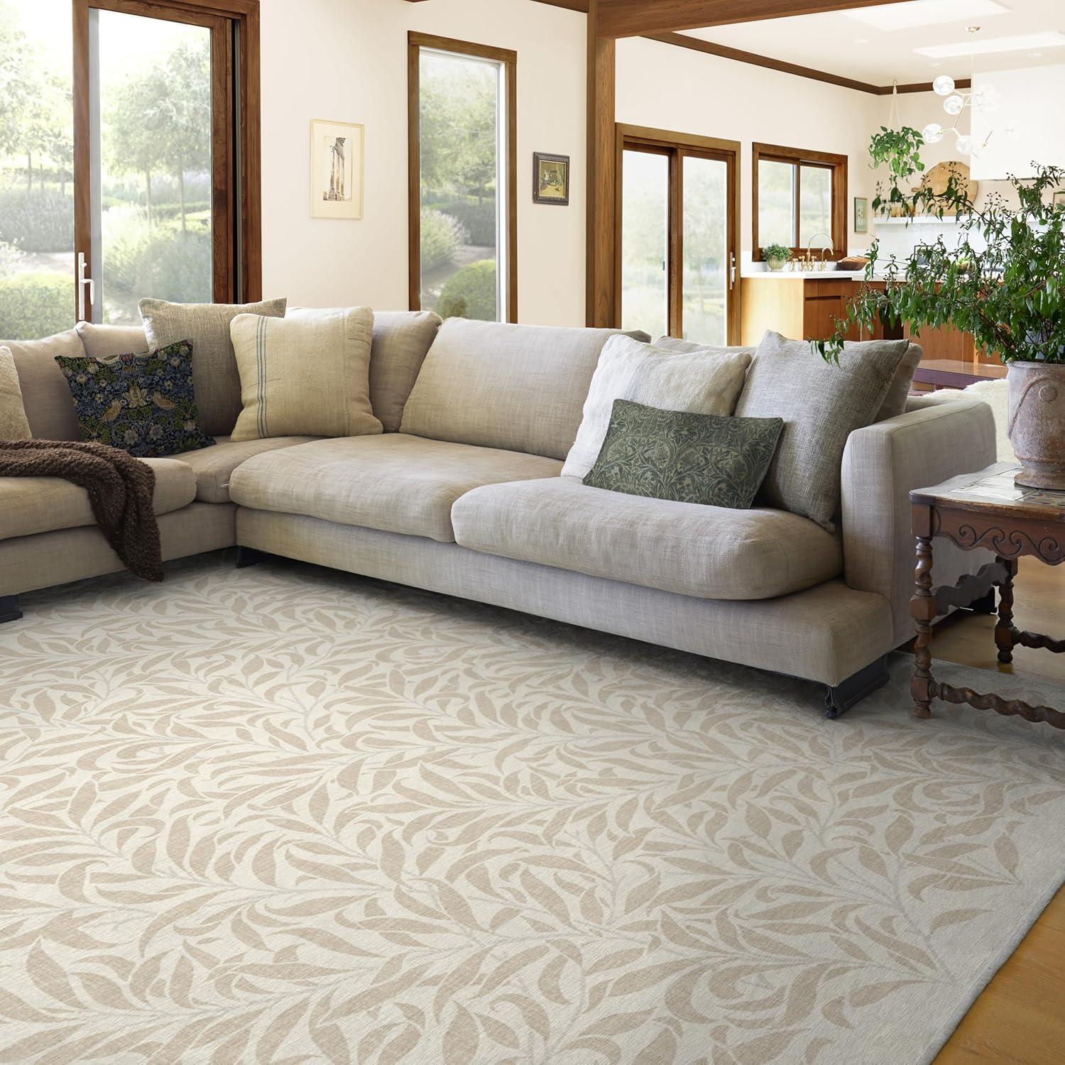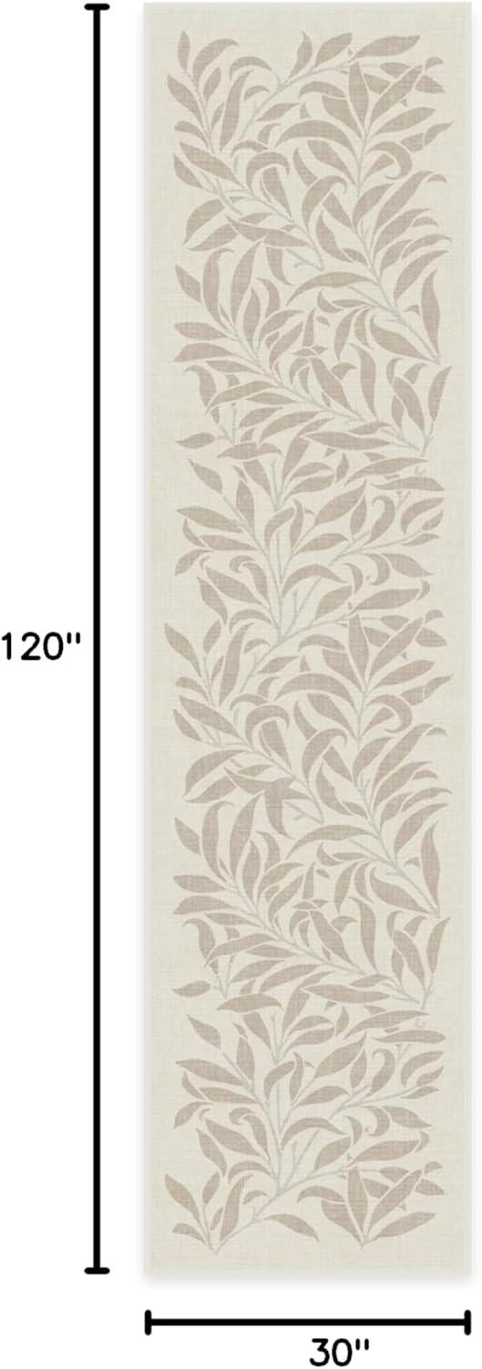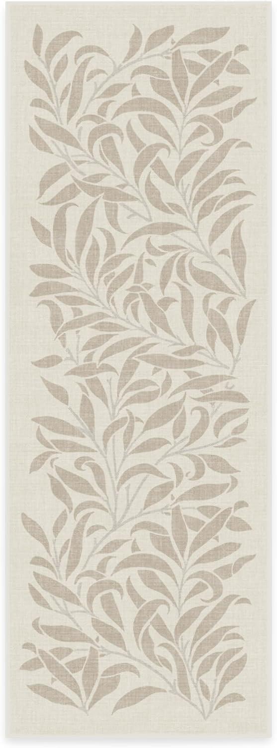 RUGGABLE x Morris & Co Washable Runner Rug – Mallow Rust Red 2.5×7, Stain-Resistant, Non-Slip Hallway Runner – Machine Washable Rug for Hallway, Entryway, Living Room & Kitchen–with Standard Pad(Pure Willow Boughs Natural – Cushioned Pad)