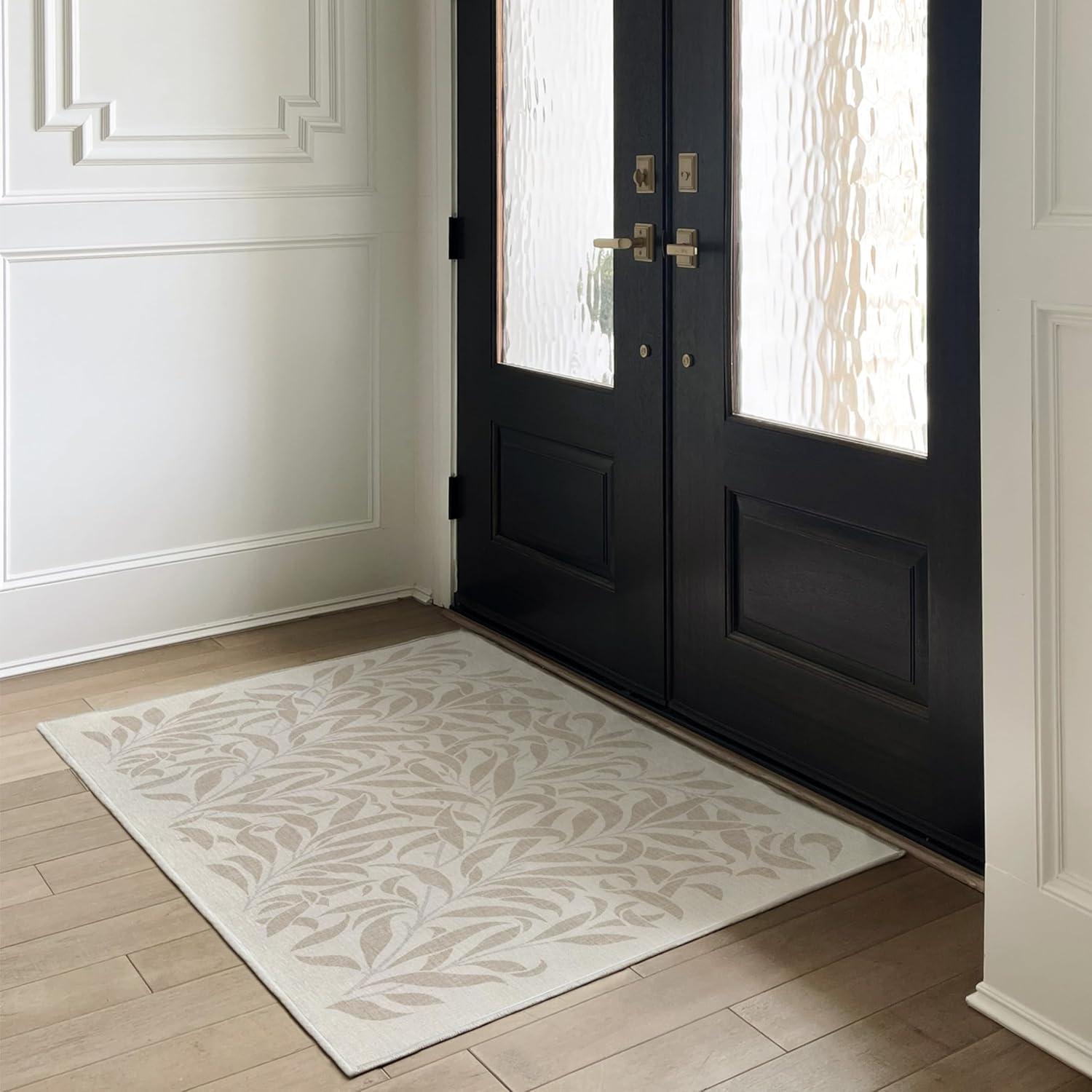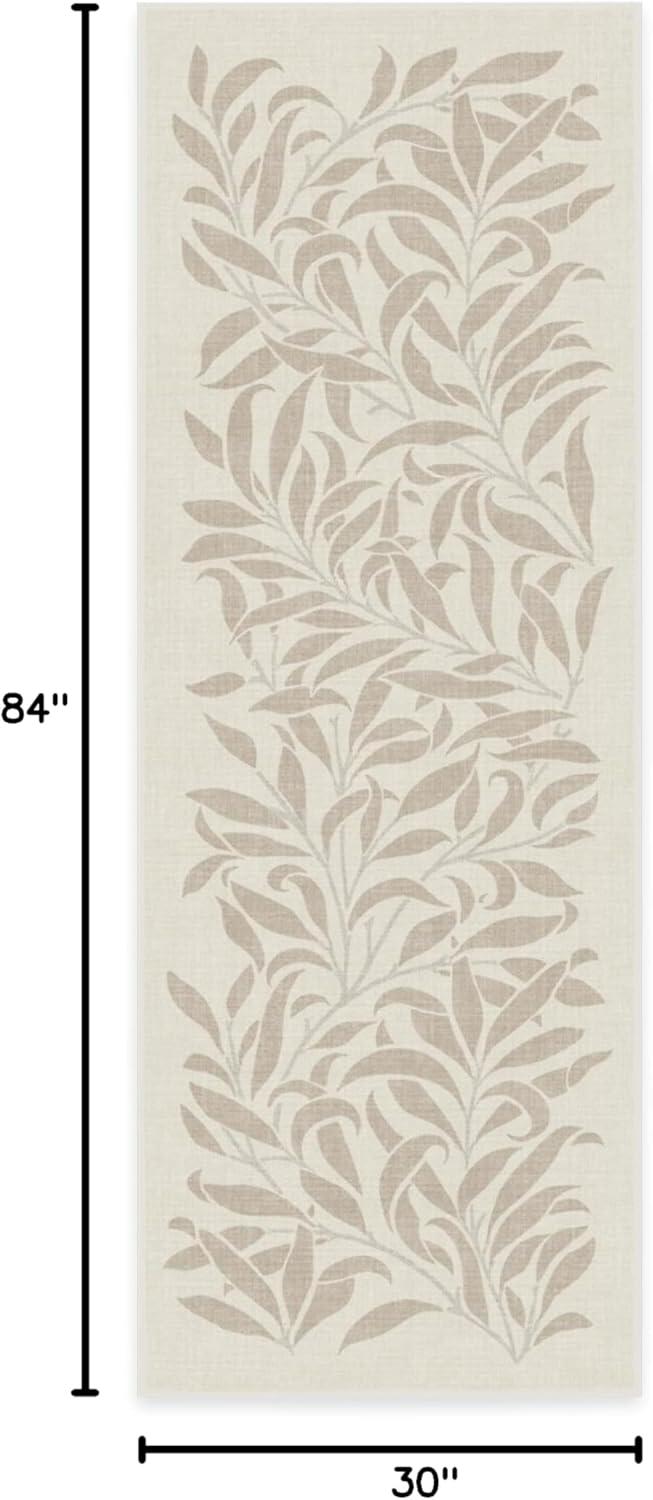 RUGGABLE x Morris & Co Washable Runner Rug – Mallow Rust Red 2.5×7, Stain-Resistant, Non-Slip Hallway Runner – Machine Washable Rug for Hallway, Entryway, Living Room & Kitchen–with Standard Pad(Pure Willow Boughs Natural – Standard Pad)